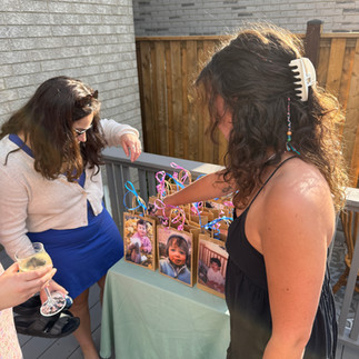 I made up goodie bags as well, with some candy and a little craft book. The kicker was: I printed out various baby photos of myself and stuck them on the bags. My friends got to choose which ‘baby me’ they wanted to bring home with them.